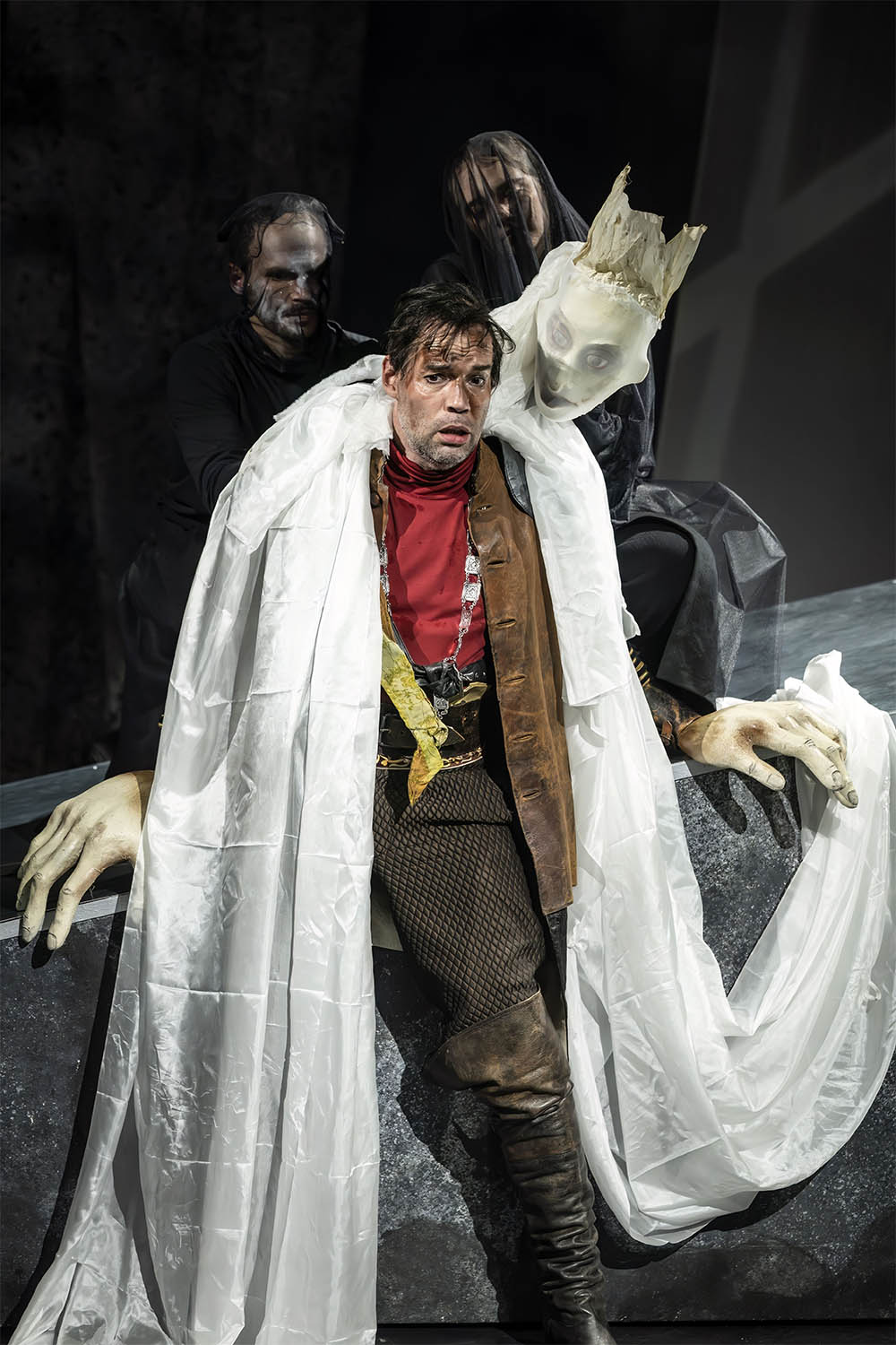 Die Koproduktion von Theater Waidspeicher und Theater Erfurt widmet sich Giuseppe Verdis musikalischem Porträt des Aufsteigers und Machtmenschen Macbeth und kombiniert den Stoff mit Texten aus Shakespeares dramatischer Vorlage. Macbeth berauscht sich an Macht und Brutalität und steigt damit vom Soldaten zum König von Schottland auf. Doch von Anbeginn umgeben ihn Visionen und Fiktionen, magische Frauen und Tote sprechen zu ihm und sein Ende ist so gespenstisch wie sein Aufstieg. Als Komponist, der an den politischen Umwälzungen seiner Zeit großen Anteil nahm, stattete Giuseppe Verdi den Protagonisten der Shakespeareschen Tragödie mit den feinsten charakterlichen Nuancen zwischen Verlorenheit und Größenwahn aus. Die Inszenierung von Christian Georg Fuchs wirft einen genauen Blick auf dieses musikalische Porträt eines Machtmenschen. Sänger Máté Sólyom-Nagy verkörpert den tragischen König und die Spieler*innen des Theaters Waidspeicher umgeben ihn mit seinem zwischen Wahn und Vision oszillierenden Umfeld aus Geistern, Menschen und Wiedergängern.