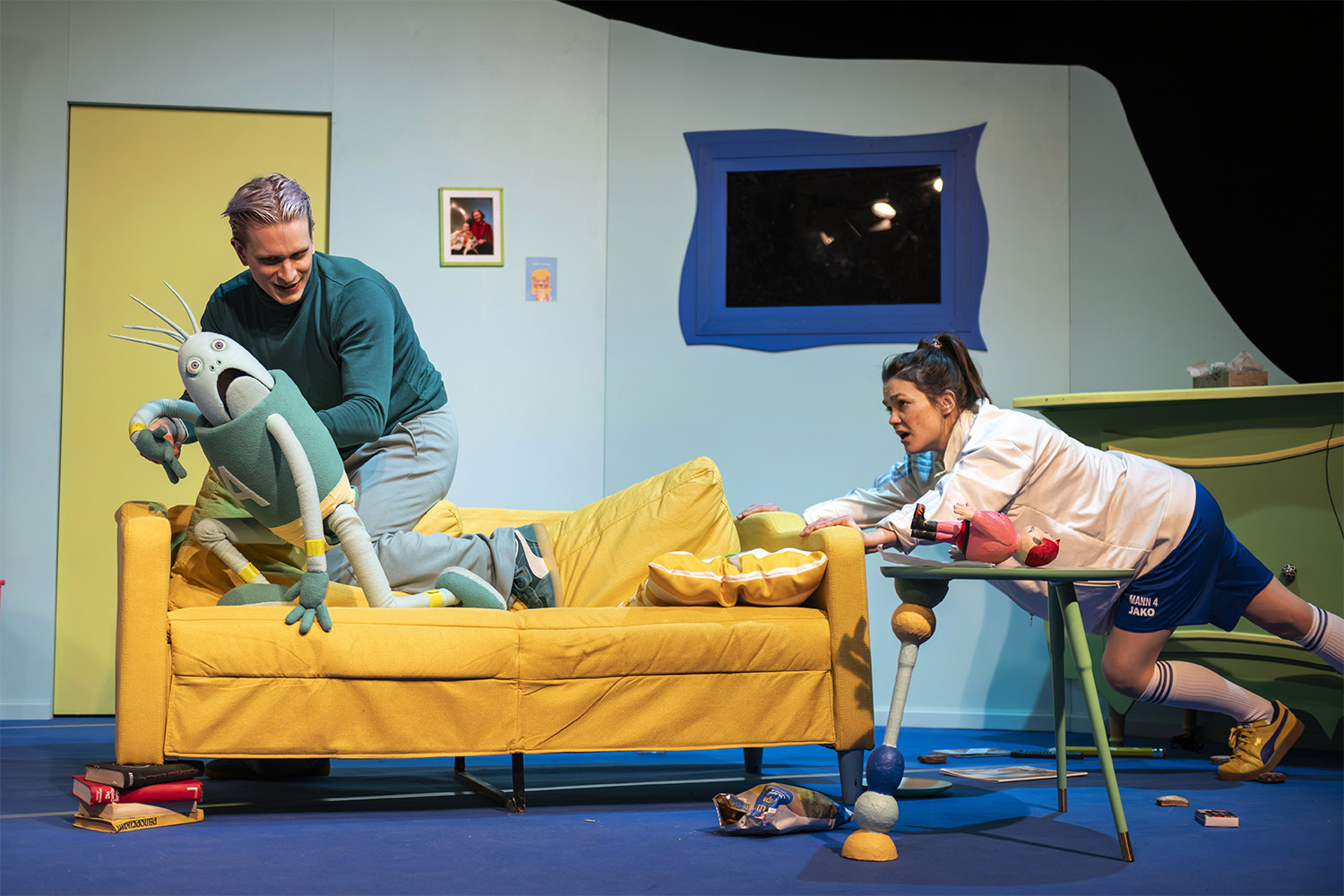 „Angstmän“ von Hartmut El Kurdi in einer rasanten Inszenierung von Naemi Friedmann ist eine Geschichte voller Spannung und Komik, die auf originelle Weise mit der Angst vorm Alleinsein umgeht.
